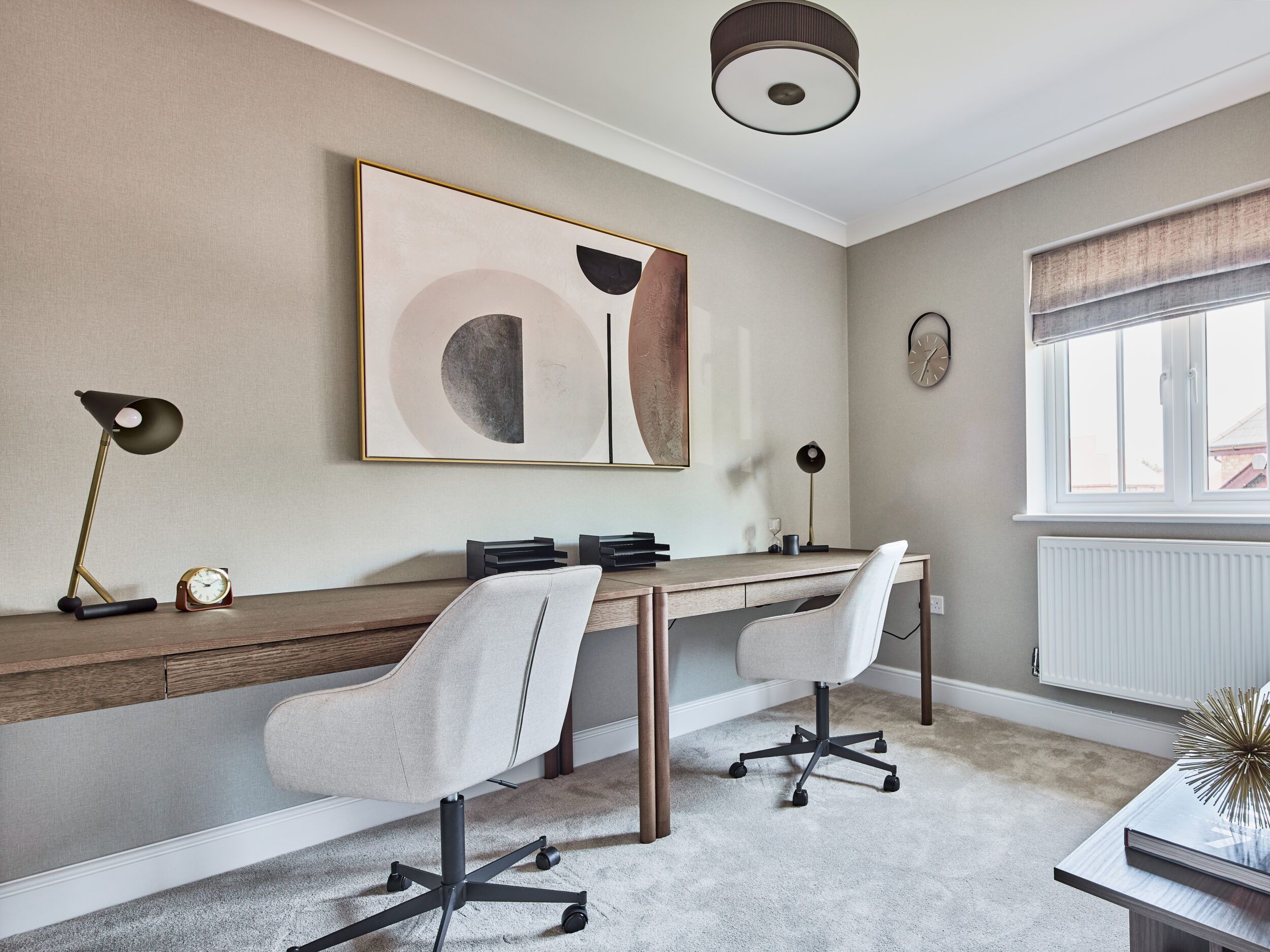 LED recessed downlights to kitchen, bathroom, en-suites and hallway, with low energy pendant fittings to living room, dining room, all bedrooms and landing. Generous supply of white power outlets throughout, including USB charge points to kitchen, living room, master bedroom and study where applicable. Telephone point in hallway, living room and master bedroom. Homes wired for Sky and Freeview TV distribution to living room, dining room, study and all bedrooms. Power and lighting provided to loft space and garages. Underfloor heating provided to downstairs, upstairs heated via radiators all powered by an air source heat pump.