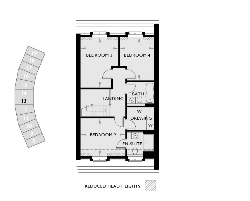 Walk in wardrobes to the master bedroom to all plots within The Crescent Collection. Walk in wardrobes to bedroom 2 to The Hemsted and The Cavendish. Fitted wardrobes to bedroom 2 to The Wealden and The Goddard. Fitted wardrobes to bedroom 3 to The Wealden and The Goddard.
