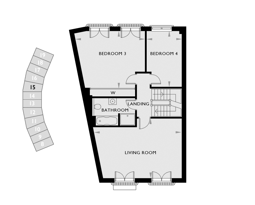 Walk in wardrobes to the master bedroom to all plots within The Crescent Collection. Walk in wardrobes to bedroom 2 to The Hemsted and The Cavendish. Fitted wardrobes to bedroom 2 to The Wealden and The Goddard. Fitted wardrobes to bedroom 3 to The Wealden and The Goddard.