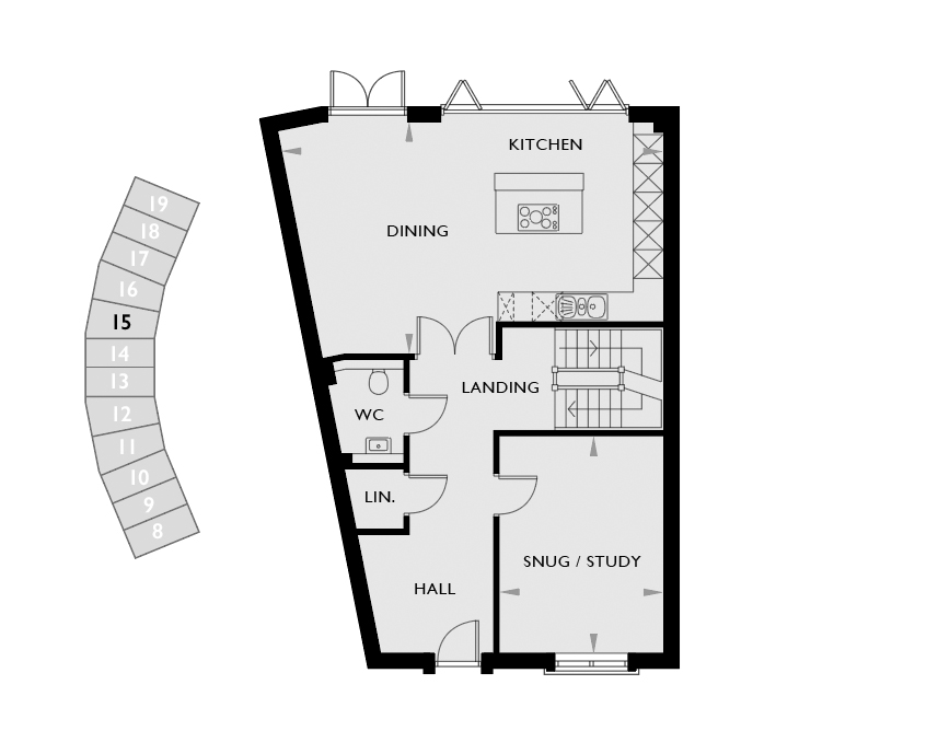 NEFF appliances include x2 single oven, x1 combi microwave and 14cm warming drawer. NEFF 4 zone induction Flexigrid vented downdraft hob, dishwasher, wine cooler. Quartz worktop to kitchen as standard, and choice of undermounted sink.