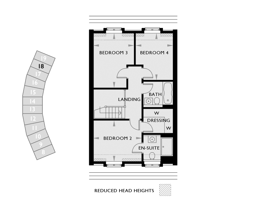 Walk in wardrobes to the master bedroom to all plots within The Crescent Collection. Walk in wardrobes to bedroom 2 to The Hemsted and The Cavendish. Fitted wardrobes to bedroom 2 to The Wealden and The Goddard. Fitted wardrobes to bedroom 3 to The Wealden and The Goddard.