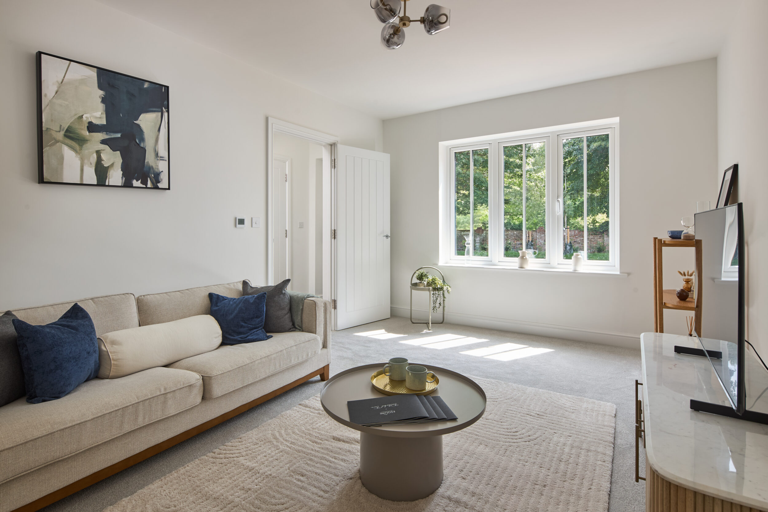 A choice of porcelain floor tiles to kitchen, bathroom, en-suites and cloakroom, with a choice of porcelain wall tiles to bathroom and en-suites. Attractive white satin painted skirtings and architraves provided throughout, with white satin painted internal moulded doors with polished chrome ironmongery. Bespoke white painted staircase with oak handrail. Built in wardrobes to master bedroom, with pure white glass infills to all homes.