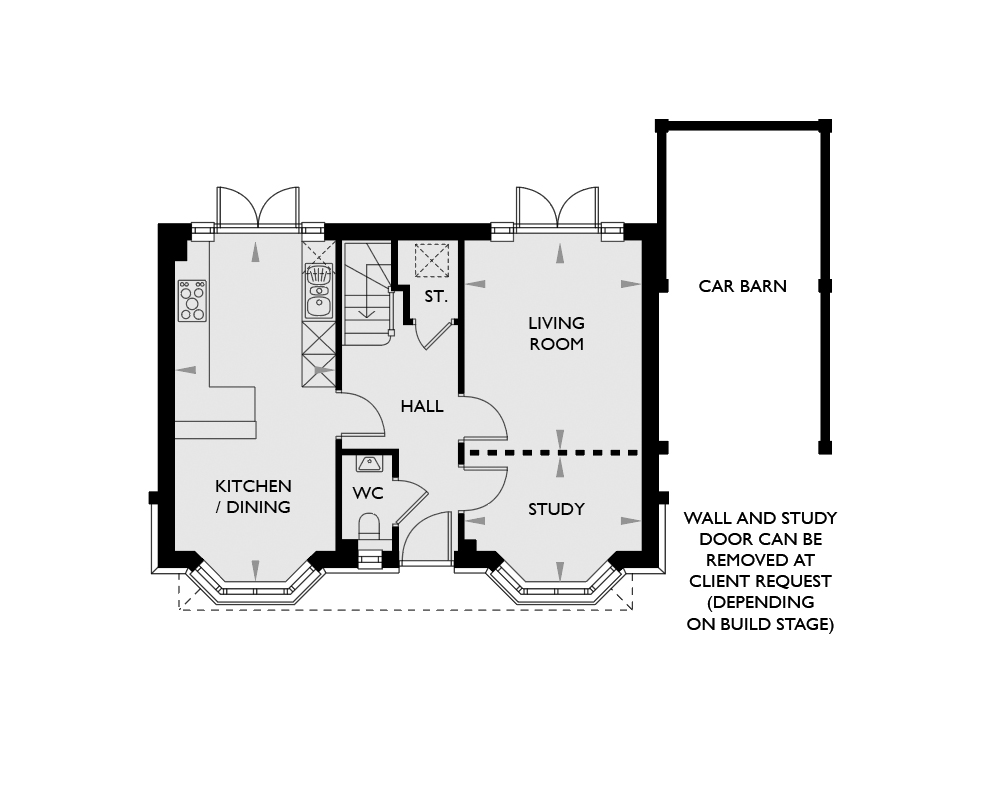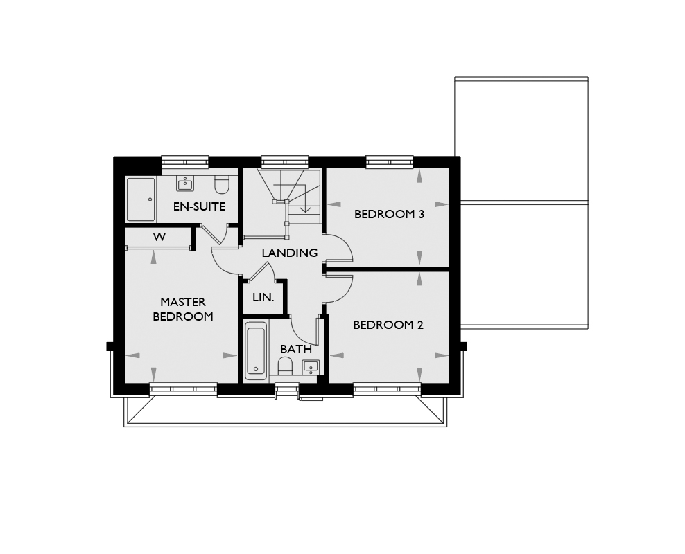 A choice of porcelain floor tiles to kitchen, bathroom, en-suites and cloakroom, with a choice of porcelain wall tiles to bathroom and en-suites. Attractive white satin painted skirtings and architraves provided throughout, with white satin painted internal moulded doors with polished chrome ironmongery. Bespoke white painted staircase with oak handrail. Built in wardrobes to master bedroom, with pure white glass infills to all homes.