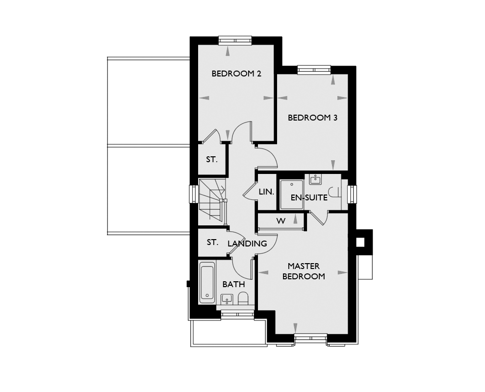 A choice of porcelain floor tiles to kitchen, bathroom, en-suites and cloakroom, with a choice of porcelain wall tiles to bathroom and en-suites. Attractive white satin painted skirtings and architraves provided throughout, with white satin painted internal moulded doors with polished chrome ironmongery. Bespoke white painted staircase with oak handrail. Built in wardrobes to master bedroom, with pure white glass infills to all homes.