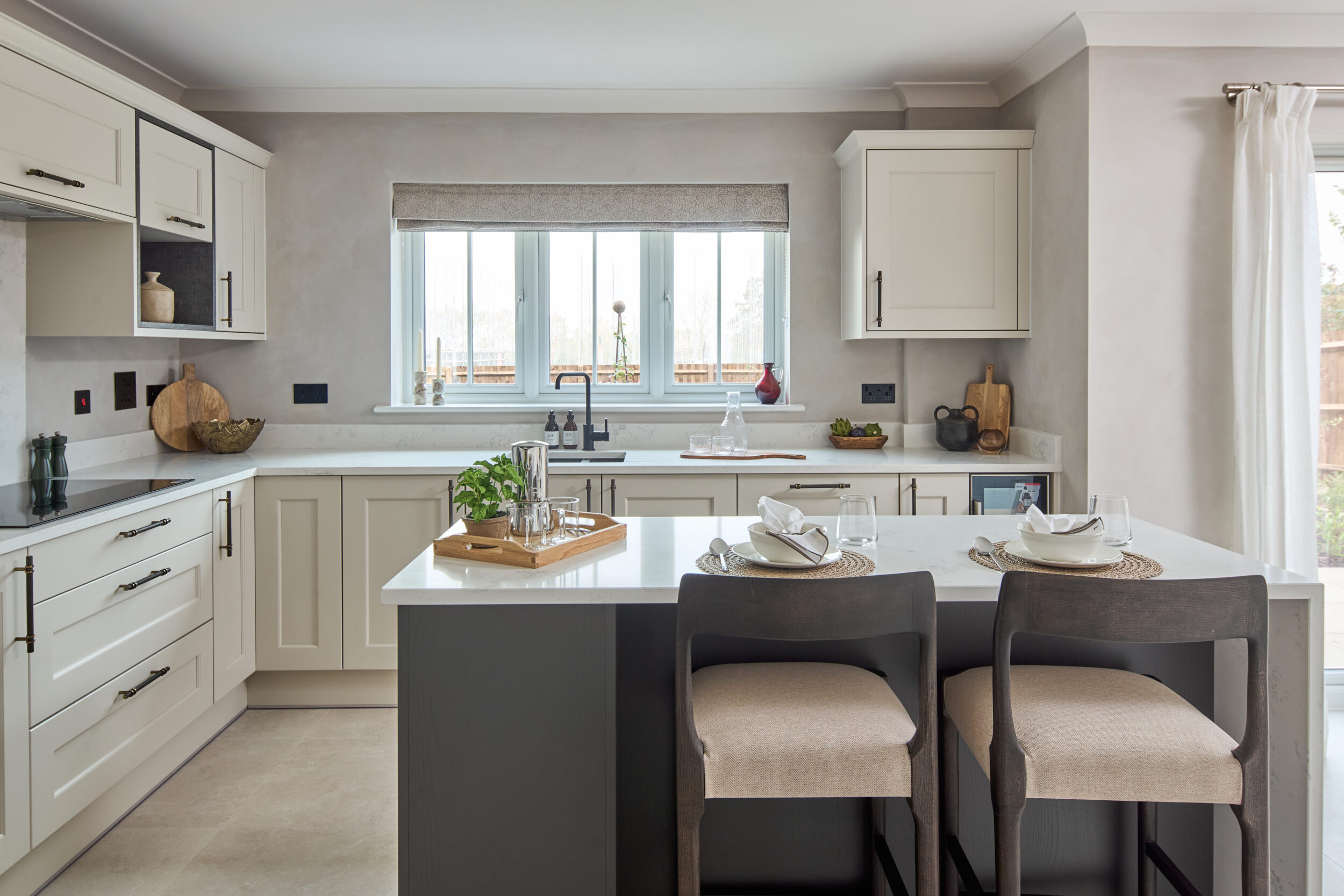 Cherry, Laurel, Chestnut, Hazel, Wisteria, Dahlia, Lime, Mulberry, Whitebeam, Primrose, Redwood, Juniper: NEFF appliances include double oven, 5 zone induction hob, 60/40 fridge freezer, dishwasher and Elica extractor.