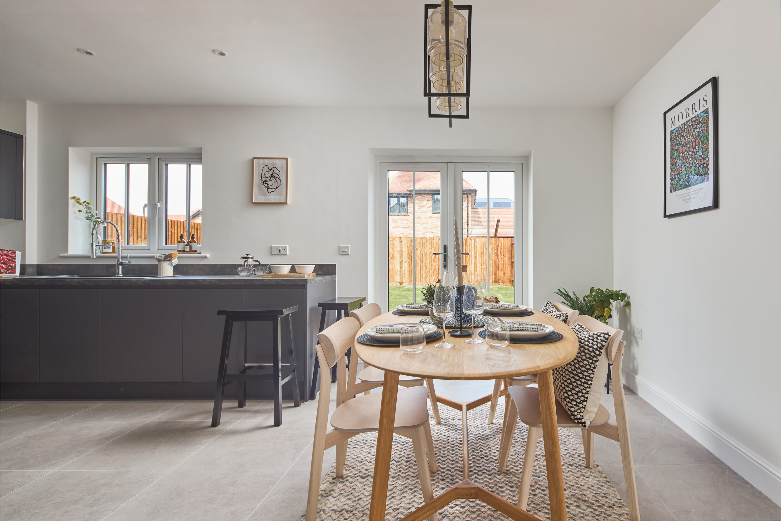 NEFF appliances include x1 single oven, x1 combi-microwave oven, 5 zone induction hob, x2 60/40 fridge freezer, dishwasher and Elica extractor. Quartz worktop to Kitchen as standard, and choice of undermounted sink.